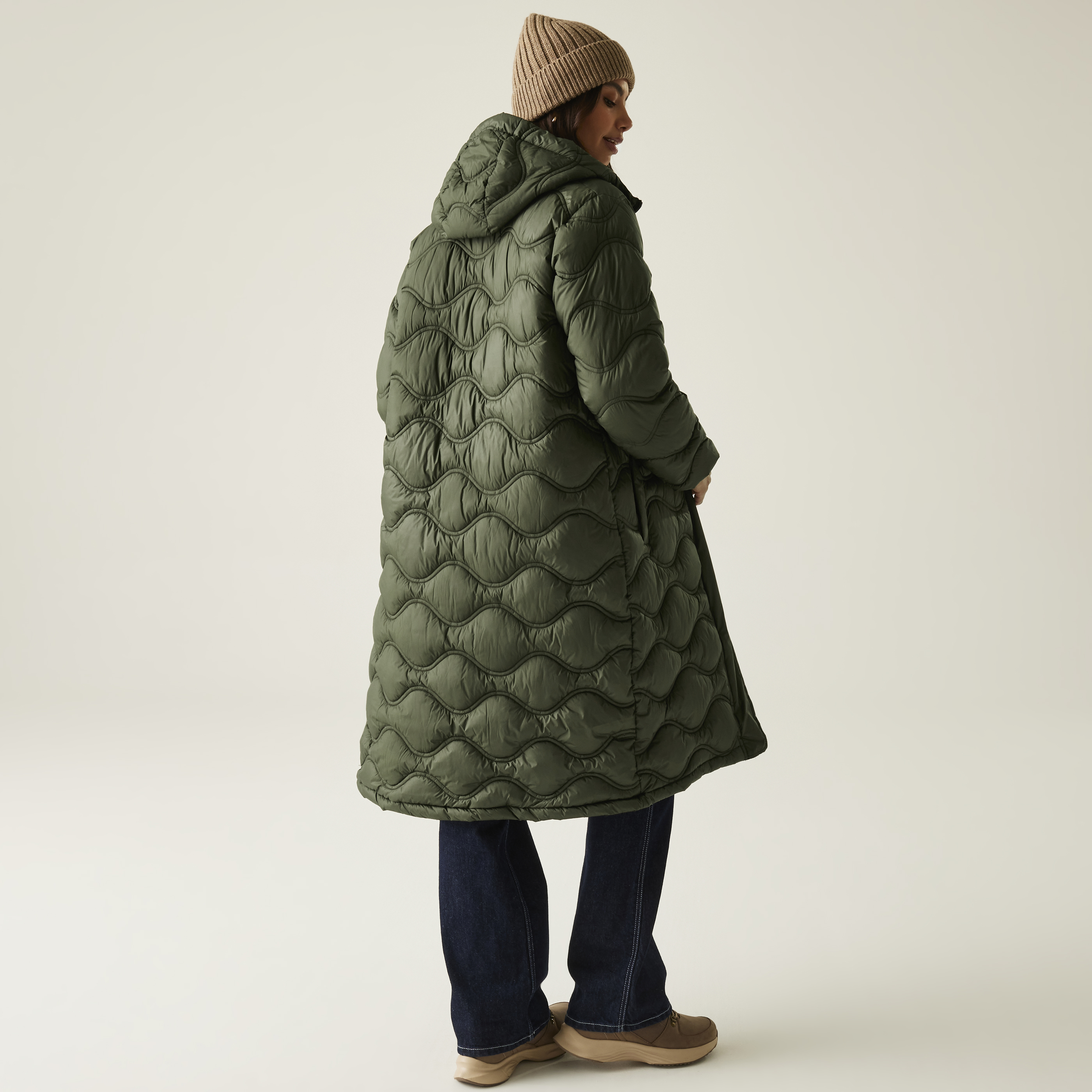 De Regatta Embrie lange gewatteerde jas is verkrijgbaar bij outdoorwinkels en diverse webshops. Consumentenadviesprijs: €85. Meer informatie: www.regatta.com/row.